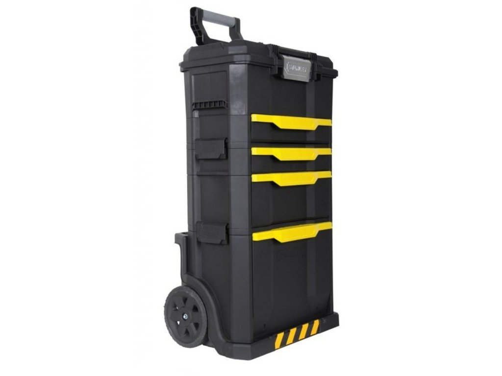 Pojízdný box na nářadíStanley Rolling workshop s boxem a zásuvkou 1-79-206 složený ze tří samostatných boxů, nabízející kvalitní a odolné zpracování.Dodáváno bez nářadí. Vlastnosti boxuHorní díl: Horní díl sestavy je dostatečně prostorný, uzamykatelný a obsahuje navíc jednu vysouvací zásuvku.Prostřední díl: Prostřední díl sestavy obsahuje hlubokou a mělkou zásuvku, stejně jako u horního dílu je i zde mechanismus zásuvek vybaven kuličkovými ložisky.Spodní díl: Spodní díl tvoří prostorný box opatřený kolečky a teleskopickou rukojetí.Velmi odolná 7" kolečka usnadňují průchod terénem.Pro koho je box vhodný?Box se hodí jak na uchovávání nářadí a jeho skladování, tak na snadné přenášení potřebných nástrojů na staveništi či v dílně.Doplňující technické informaceVnější rozměry: Šířka: 48 cm, Výška: 87 cm, Hloubka: 34 cmObjem 55,6 lDoplňkové parametry